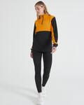 Contrast upper chest and under arm panels, Quarter zip, Side panels, Reverse nylon zips, Side pockets, 1x1 ribbed cuff sleeve, Semi automatic zip puller and slider