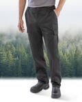 6 pockets inclding cargo and rear pockets with tear release, Expansion waistband for adjustable fit and draught protection, Treble needle stitched critical seams, Critical stress point bar tacking, Zip fly with button, Belt loops, Recycled fabrics using materials made from plastic bottles and post-industrial waste, Recycled cartons and biodegradable bags, End of life recyclable
