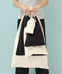 Stuff bag. Double drawcord closure. Natural pull ties. Certified 150gsm organic cotton.